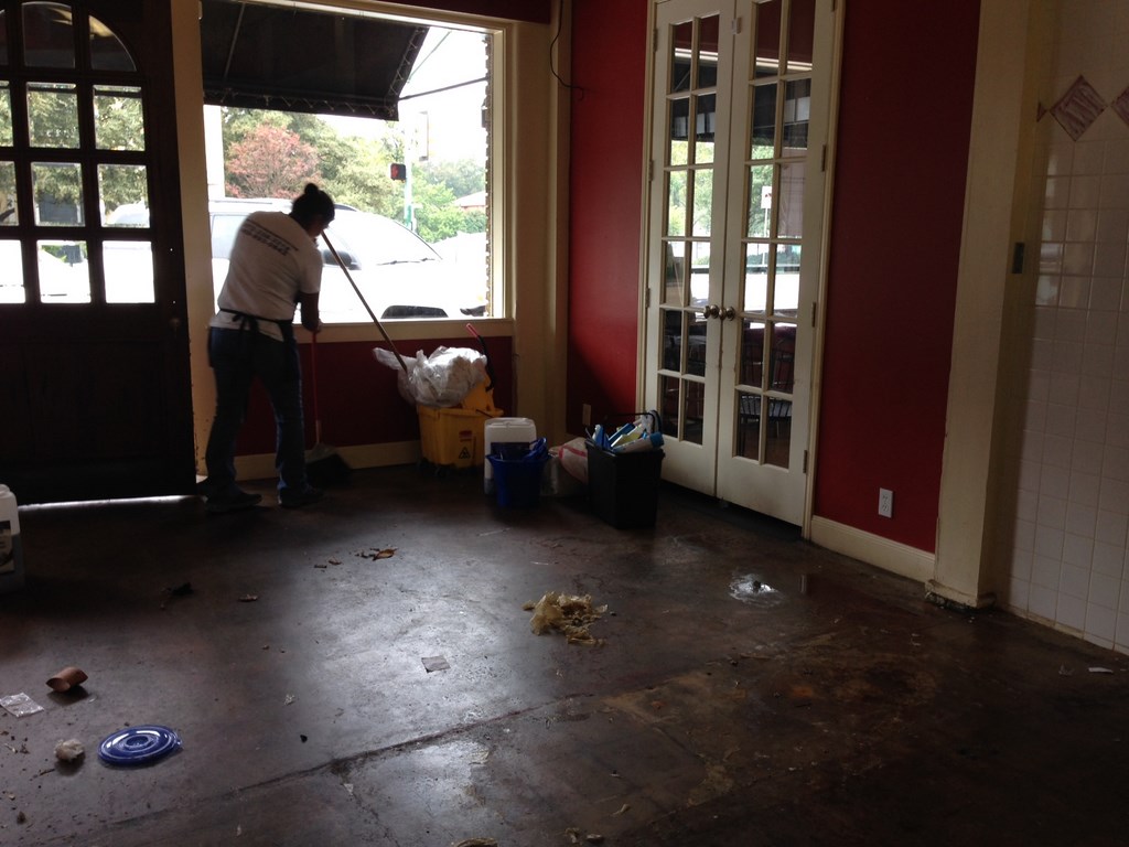 Grubbs Construction Cleaning, LLC. was contracted by the new tenant to clean, scrub/buff and seal the floors at the store/bakery. We use our secret formulas to get all that old grease from the wall and floors, now the place is disinfected, free of grease and ready to start. More….