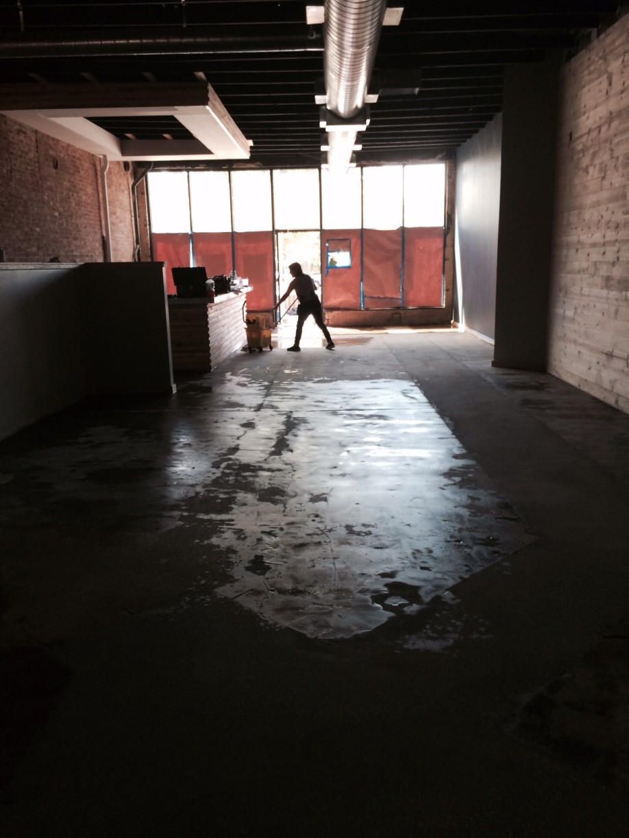 After Construction, always hire the pros to do a Post Construction Cleaning, at this place we start with the Floors getting all the dirt and construction debris out, scrapping, buffing the concrete and our trained crew stripped, sealed and waxed the concrete Floors making it shine. For more info click here.