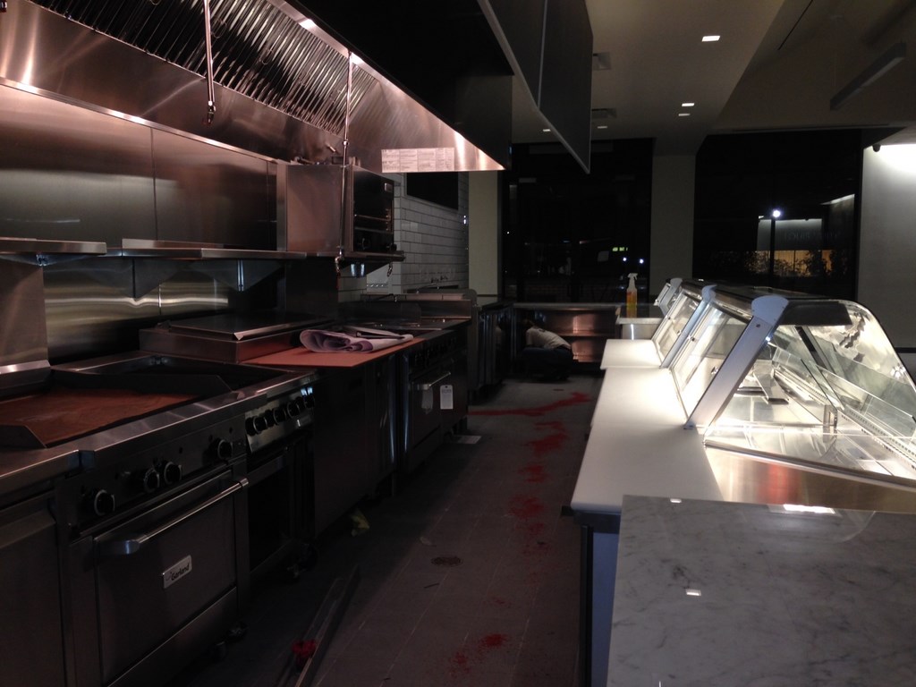 Floor Stripping in a New Restaurant at Northpark Mall in Dallas, TX