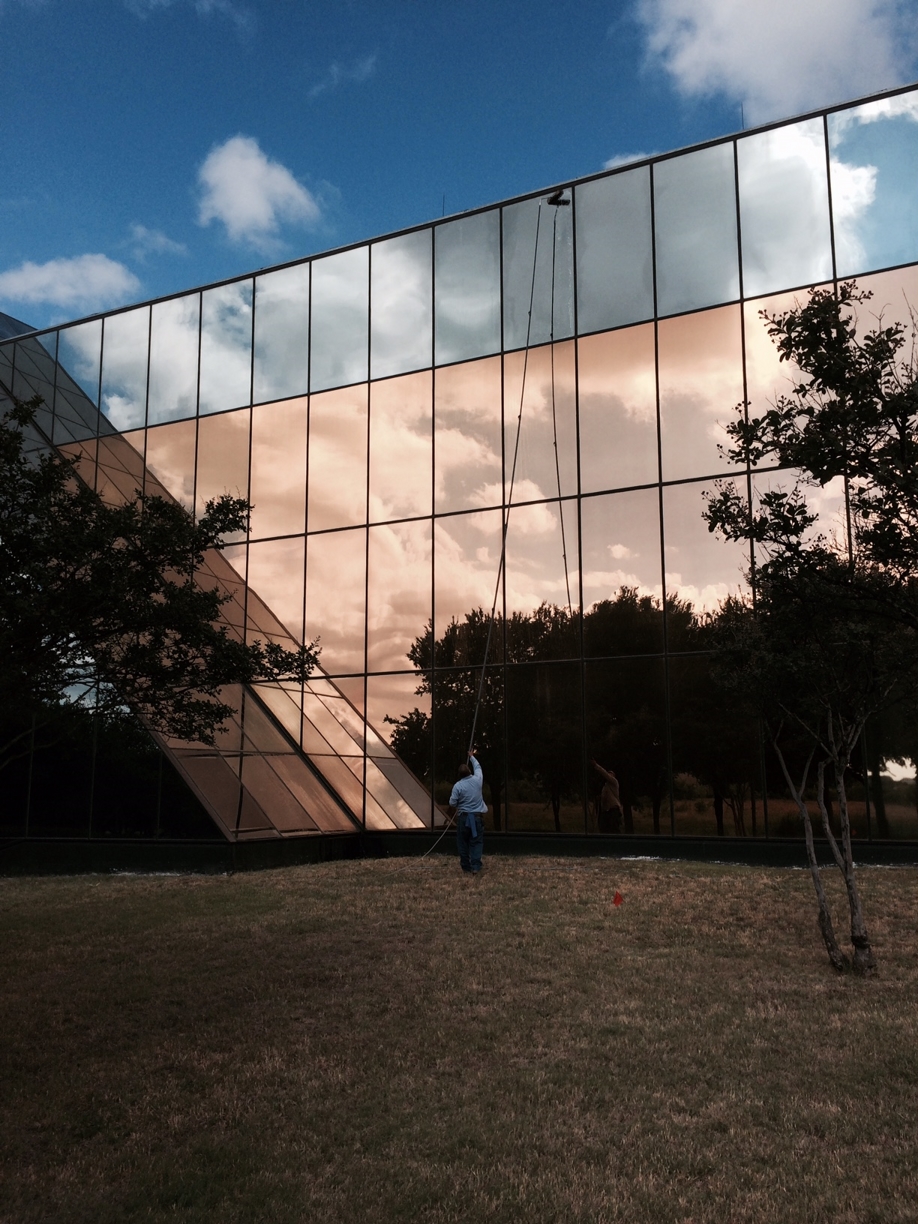 Glass Building Exterior Windows Clean Up in Dallas, Texas