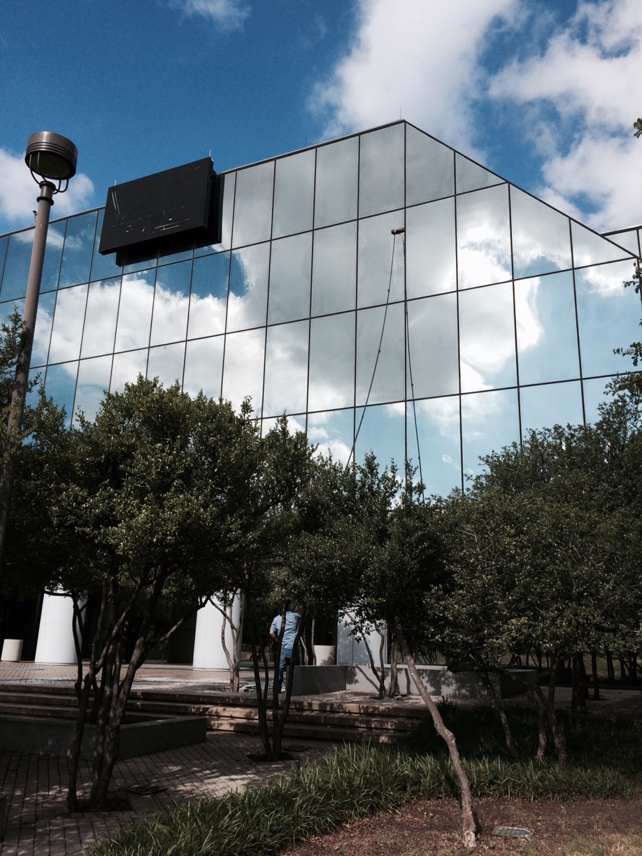 Glass Building Exterior Windows Clean Up in Dallas, Texas