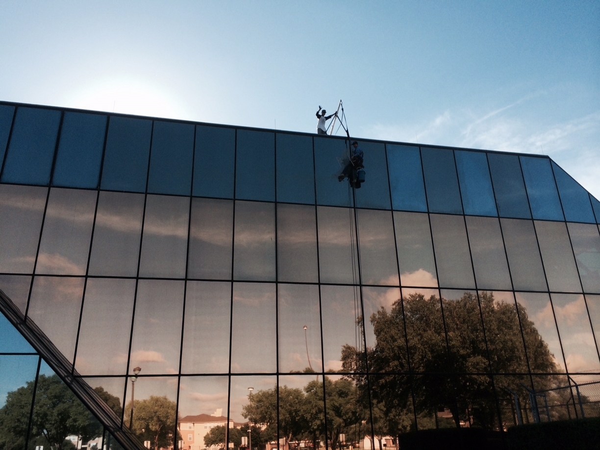 Glass Building Exterior Windows Clean Up in Dallas, Texas