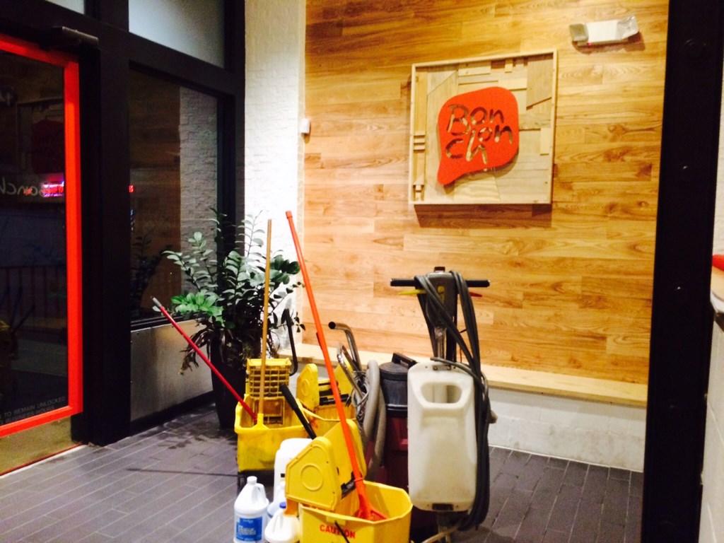 Bonchon is a very nice upscale restaurant at Mockingbird Ave./Lovers Ln. area needed a deep cleaning and take off the grease of the floors, our cleaners using specific vacuums for this task and special chemicals with our secret formulas, scrubbing and buffing the hardwood floors completely clean of grease and oils, also all the bathrooms and smelling good. Check this link for more…..